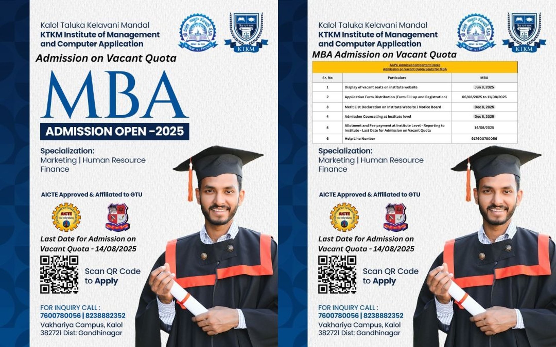 As per ACPC guidelines (http://jacpcldce.ac.in/mba-mca-courses) to fill MBA vacant seats, A candidate seeking MBA admission at KTKM Institute of Management & Computer Application - MBA on Vacant seats has to submit his application online on the College website (https://www.ktkmimca.edu.in/mba) with all requisite documents, within the prescribed time limit.